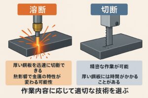 溶断は厚い鋼板の切断に適しており、切断は精密な作業に向いています。