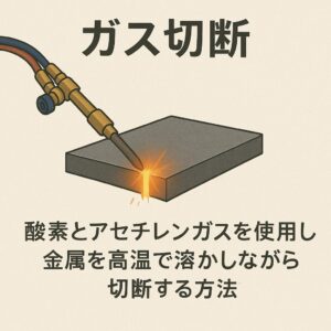 ガス切断は、酸素とアセチレンガスを使用して金属を高温で溶かしながら切断する方法です。