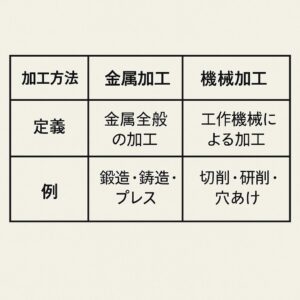 例えば、鍛造や鋳造、プレス加工なども金属加工に含まれますが、これらは必ずしも機械加工とは限りません。